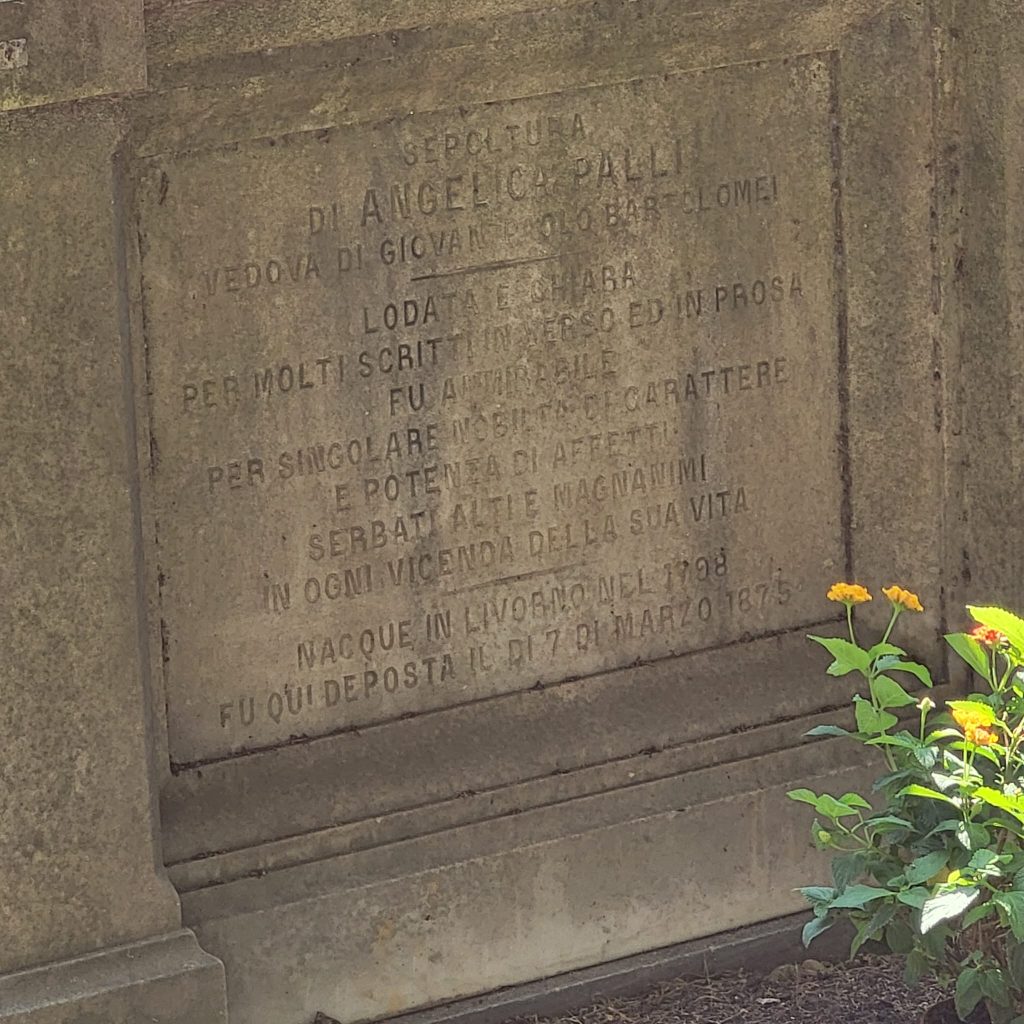 Dico subito una cosa: le date sono corrette ma, secondo me, è comunque opportuna una breve riflessione sulla questione. In effetti Angelica Palli era di religione greco-ortodossa e, come tale, è sepolta presso il cimitero Greco-Ortodosso di Livorno in via Mastacchi. La sua iscrizione (vedi sotto) è un po’ vaga, dice soltanto nata nel 1798 a Livorno e sepolta il 7 marzo 1875.